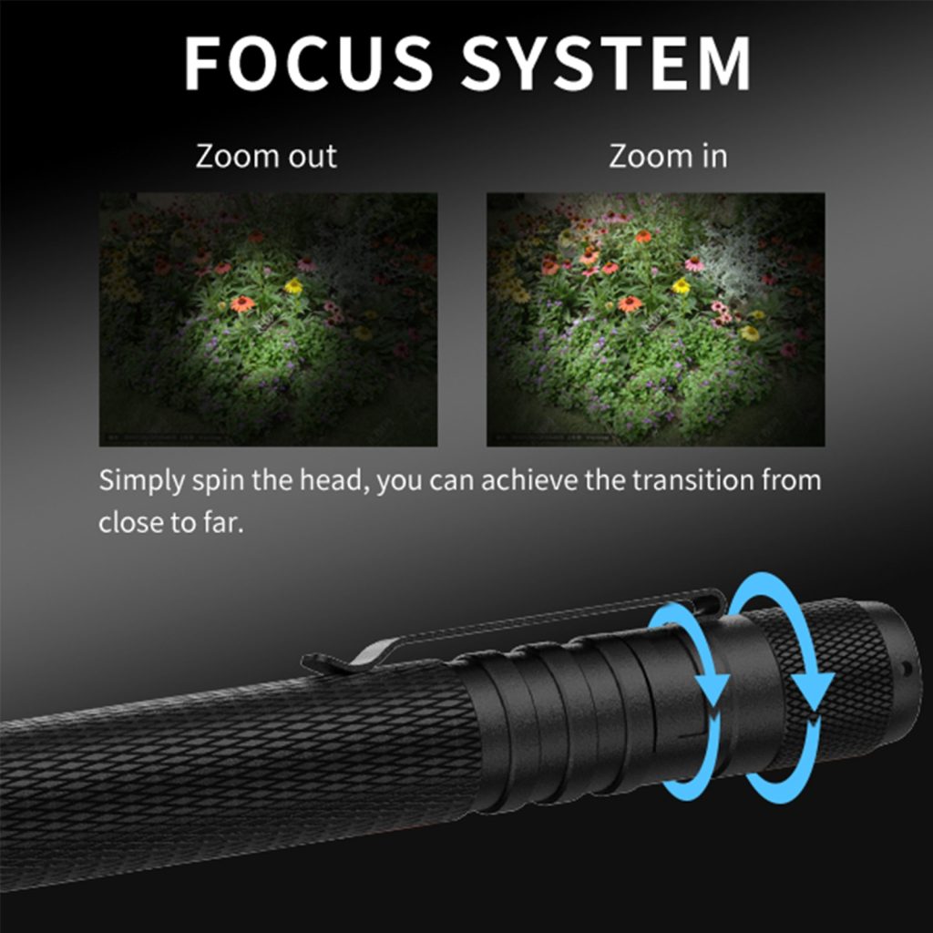 3) Rotate the light head to adjust the light effect between the spotlight and the floodlight.