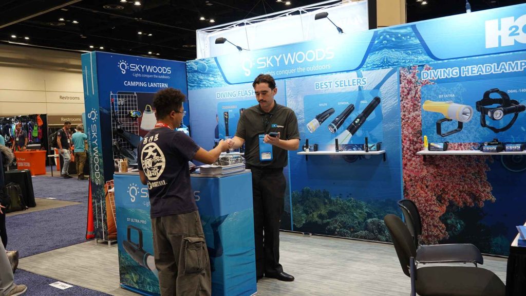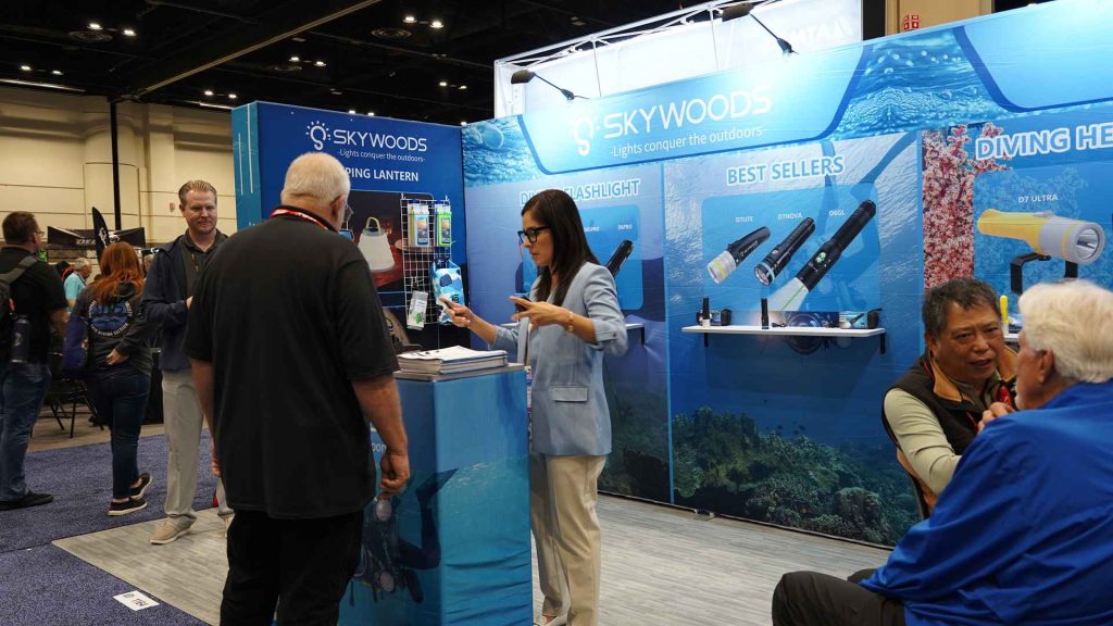 Positioned at Booth 1164, Skywoods Dive welcomed a steady stream of visitors throughout the four-day expo. Attendees had the opportunity to experience firsthand the brand’s advanced dive lights, designed to enhance visibility, safety, and performance for divers of all levels. Industry experts, professional divers, and international delegates engaged with the team, offering valuable insights and reinforcing Skywoods’ commitment to innovation.