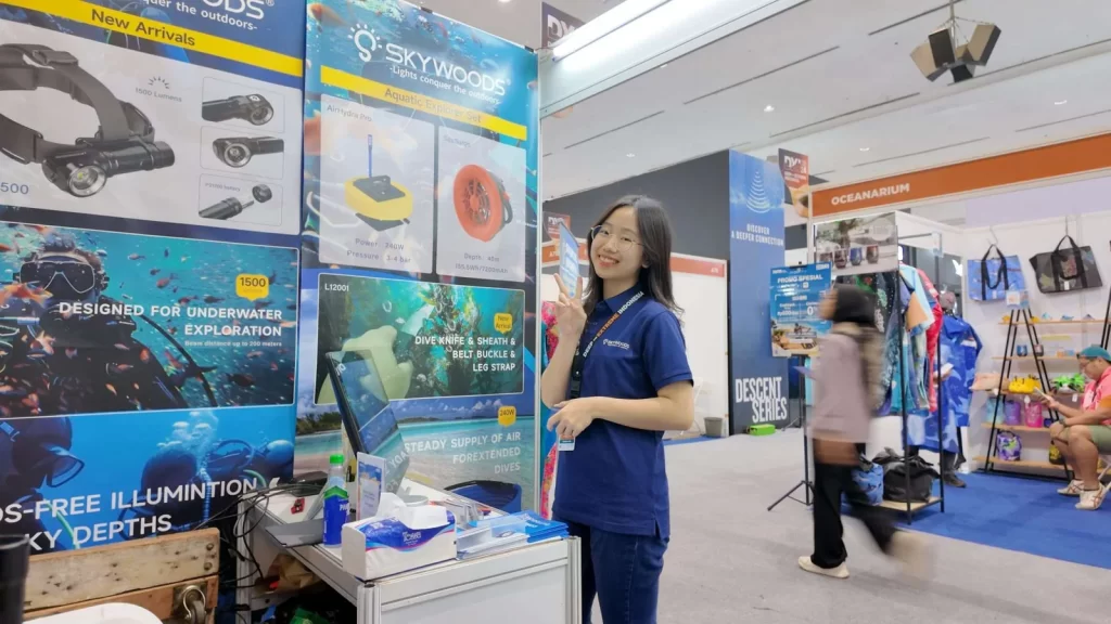 Our booth was a hub of activity, attracting visitors who were eager to explore our high-quality products designed for both underwater adventures and rugged outdoor excursions. We had the opportunity to connect with many of you, exchanging ideas and discussing how Skywoods can enhance your next expedition.